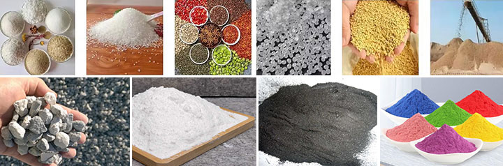 洗衣粉、膩子粉、石頭粉、石英砂、谷糠、紙漿、尿素、復合肥原料砂、聚乙二醇、元明粉、鋁灰、氧化鐵顆粒、飼料、建筑石膏粉、玄武石、催化劑、碳粉、糊精粉等10目 - 400目的精細篩分。