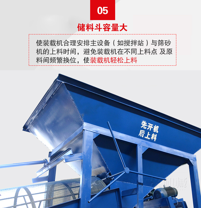 使裝載機合理安排主設備(如攪拌站)與篩砂機的上料時間,避免裝載機在不同上料點 及原料間頻繁換位,使裝載機輕松上料,降低勞動強度。