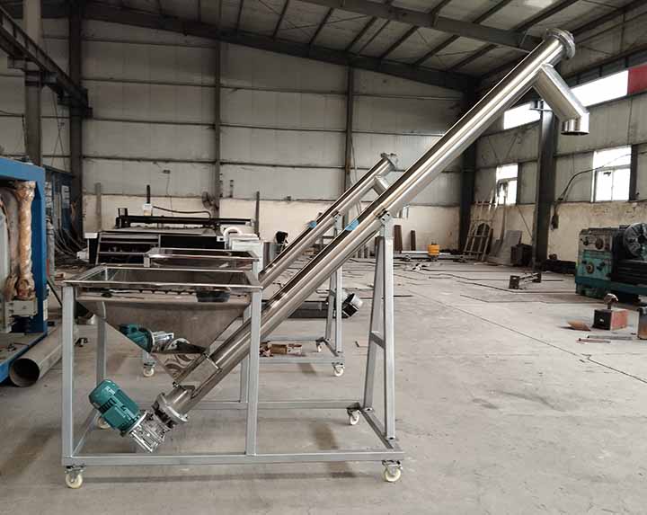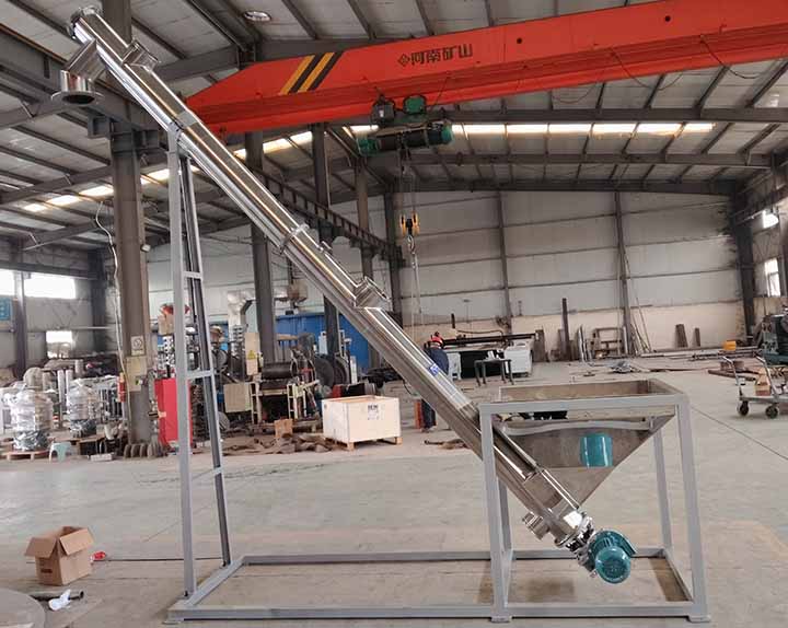 干粉螺旋輸送機(jī)端部采用法蘭互相連接成一體。同時(shí)在軸承與驅(qū)動(dòng)裝置安裝由密封件能夠防止干粉的進(jìn)入減少軸承的磨損程度,延長(zhǎng)軸承的使用時(shí)間。