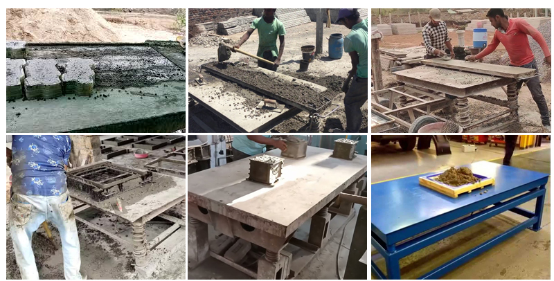 工作臺下面的臥式振動電機產生足夠的澎湃均勻的激振力并傳導到臺面上,從而驅動臺面上的模具中的水泥等澆筑液在激烈的震蕩下產生上下運動的加速度,從而擠壓出物料間的氣泡,減少澆注液體間的空氣間隙,從而達到提升預制件等澆筑模具的質量提升的目的。