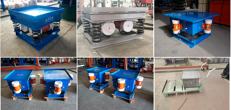 振動平臺于生產流程中用于把顆粒、粉狀物料從散裝到塊狀、形狀等形式的轉變,主要用于物料的震實,減少物料內的空氣和縫隙,一般和料倉配套使用,在翻砂鑄造行業、人防門的填充方面以及物料灌裝方面用的一直很廣泛。