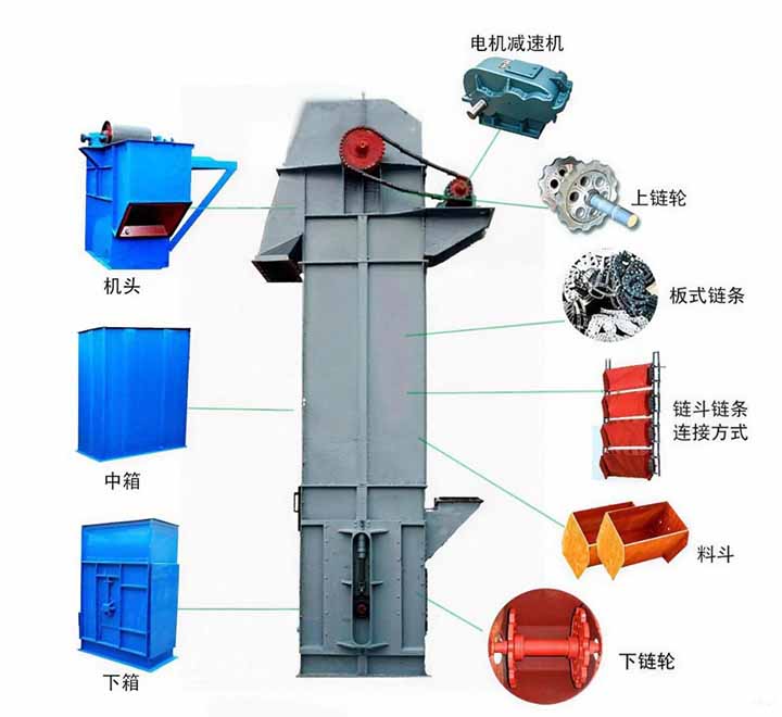 NE板鏈斗式提升機:料斗,減速機,鏈條,齒輪