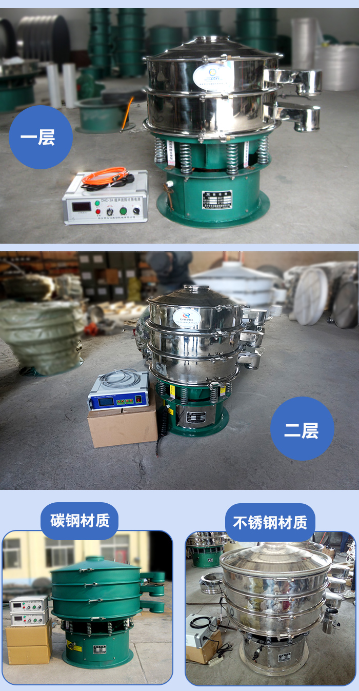 1.提高篩分速度,使得超聲波振動篩在篩分粉末、顆、漿液類物料時產(chǎn)量是普通振動篩的數(shù)倍,所以超聲波振動篩篩分精度可達95%以上,可以完全實現(xiàn)500目以下高精細粉末物料的篩分作業(yè)